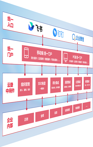 对协作平台提供支持服务,,,支持企业应用与协作平台对接,,,包含组织同步、、、、消息集成、、待办集成等。。。支持目前主流的协作平台:钉钉、、、企微和飞书。。。